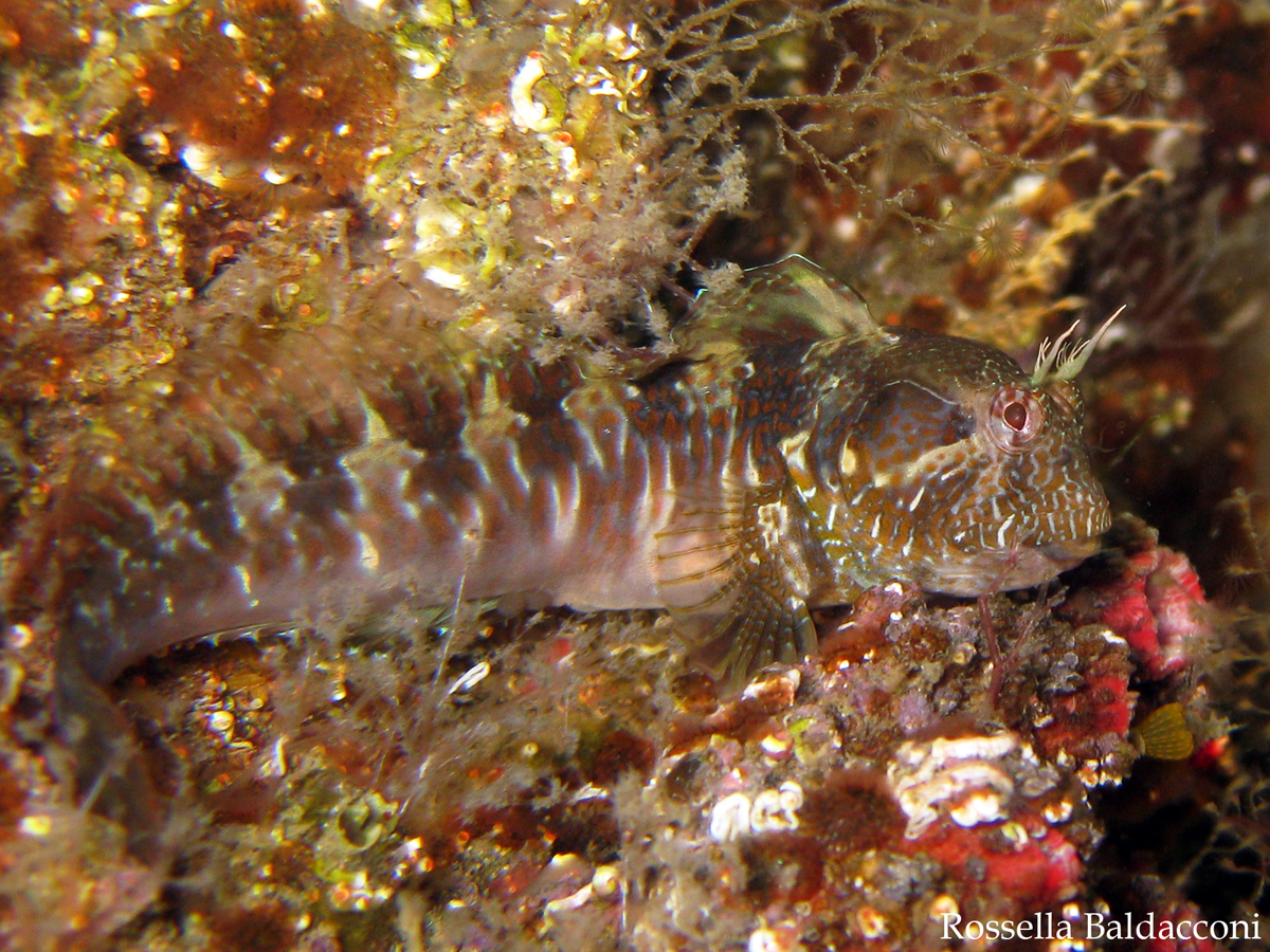 Piccola bavosa con tentacoli oculari ramificati e macchie scure a forma di clessidra bordate da linee chiare sui fianchi. Fino a 7 cm di lunghezza. Vive su fondi rocciosi coperti da vegetazione. Nel Mar Piccolo è stata osservata su substrato artificiale riparato.